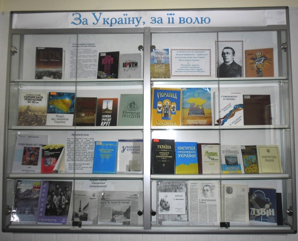 У читальному залі суспільно-політичних наук підготовлена виставка з нагоди Дня пам’яті Героїв Крут, а також до 200-річчя від дня народження Михайла Вербицького – відомого українського композитора, автора гімну України «Ще не вмерла Україна» та 150-ї річниці першого публічного виконання національного гімну України , яке відбулося 10 березня 1965 року.