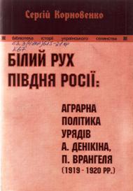 Корновенко, С. В. Білий рух Півдня Росії: аграрна політика урядів А. Денікіна, П. Врангеля (1919-1920 рр.) : [монографія] / С. В. Корновенко ; Черкаський нац. ун-т ім. Б. Хмельницького. - Черкаси : Чабаненко Ю. А., 2009. - 438 с.