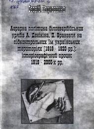 Монографію присвячено аналізу аграрної політики А. Денікіна, П. Врангеля у 1919-1920 рр.