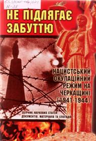 Не підлягає забуттю: нацистський окупаційний режим на Черкащині (1941-1944) [Текст] : зб. наук. ст., документів, матеріалів та спогадів / Черкас. осередок Міжнар. громад. орг. "Міжнар. фонд "Взаєморозуміння і толерантність", Черкаська обл. орг. нац. спілки краєзнавців України [та ін.] ; упоряд.: В. М. Мельниченко, Т. А. Клименко, Г. М. Голиш ; кер. проекту О. А. Воронкіна. - Черкаси : Вертикаль, 2013. - 366 с.