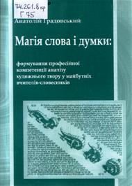 Градовський, А. Магія слова і думки: формування професійної компетенції аналізу художнього твору у майбутніх учителів-словесників / А. Градовський ; рец. : В. Т. Поліщук, О. С. Киченко. - Черкаси : АНТ, 2011. - 176 с.