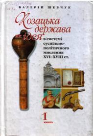 Шевчук, В. О. Козацька держава як ідея в системі суспільно-політичного мислення XVI-XVIII ст.: у 2-х кн., Кн. 1 / В. О. Шевчук. - К.: Грамота, 2007. - 720 с. Книга сучасного українського історика та письменника - це вклад історії однієї з найвизначніших ідей українського державотворення, де автор прагне не лише дослідити ті чи інші явища, а передусім їх осмислити. Вона містить величезний масив інформації про становлення, розвиток і руйнацію Козацької держави. |