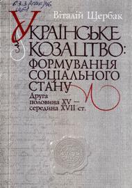 Щербак, В. Українське козацтво: формування соціального стану. Друга половина XV- середина XVII ст.: монографія / В. О. Щербак. - К.: Асаdemia, 2000. - 296 с. У монографії досліджується проблема формування українського козацтва як соціального стану. Аналізуються правові, економічні та духовні основи становлення козацької верстви. |