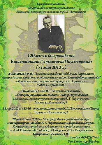Международная конференция «Литературное наследие К. Г. Паустовского и мировая культура» прошла в Москве с 29 по 31мая. Организовали её ИМЛИ им. Горького и Московский литературный Музей-центр Г.К. Паустовского.