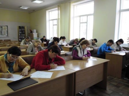 Вп’ятнадцяте цей знаменний день був відзначений написанням Всеукраїнського диктанту національної єдності. У цій духовній акції взяли участь близько 20-ти працівників нашої книгозбірні на чолі з директором та його заступником.