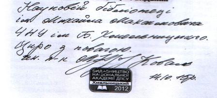 Колектив наукової бібліотеки дуже вдячний автору за вагомий подарунок.