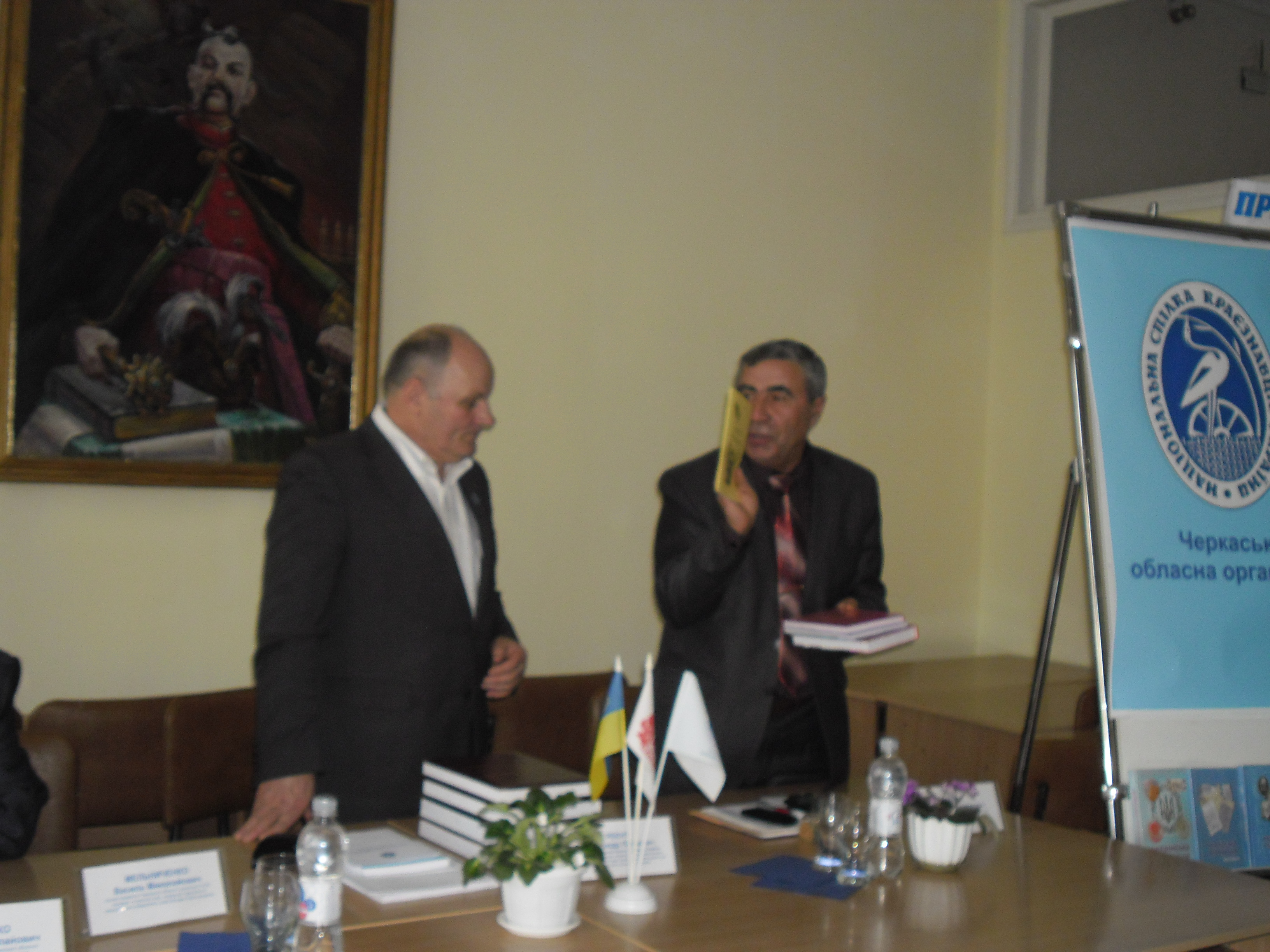 На зустріч із провідним науковцем прийшли члени Черкаської обласної організації НСКУ, викладачі та студенти університету, співробітники бібліотеки та усі, хто цікавиться краєзнавчою проблематикою. Зустріч пройшла плідно, в урочистій і теплій атмосфері. Виступаючи перед присутніми, Олександр Петрович зауважив, що основною метою діяльності Спілки є розвиток національної культури та краєзнавчого руху в органічному поєднанні всіх його державних, громадських і освітянських форм, залучення до пізнання рідного краю широких верств населення, використання досвіду, здобутого в цій галузі в Україні та за кордоном, створення й оприлюднення документально-публіцистичних і науково-популярних творів з історії та культури краю.